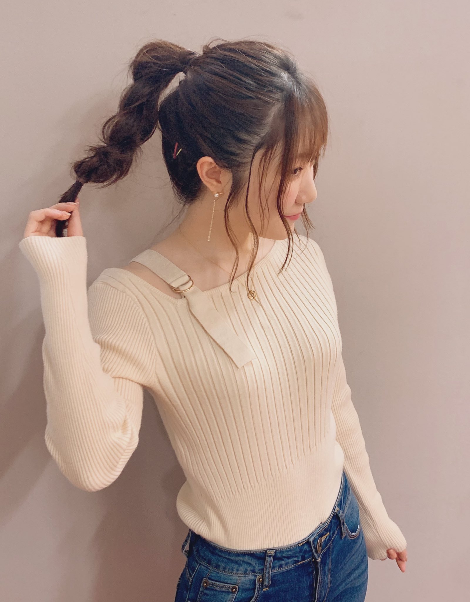 ■白ニット+ジーンズ姿のちゃんりな