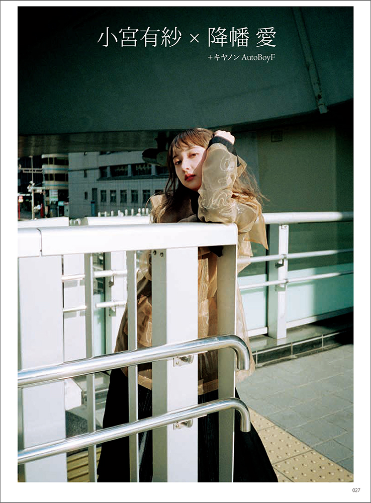 降幡さんが最近購入し、お気に入りでいつも持ち歩いているというキヤノンのフィルムカメラ、オートボーイを使用し、2人だけの完全プライベート撮影。穏やかな関係性が伝わりつつも、光や構図がきちんと計算されているという点でほどよい緊張感もある、素直なポートレートだ。