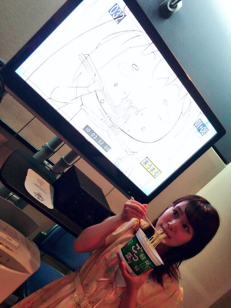 マイク前でラーメンすすってるあいるーを後ろから見ながら、お腹が鳴らないように耐えるのが大変だったww#umaru_anime https://t.co/sJlQfrKZA3